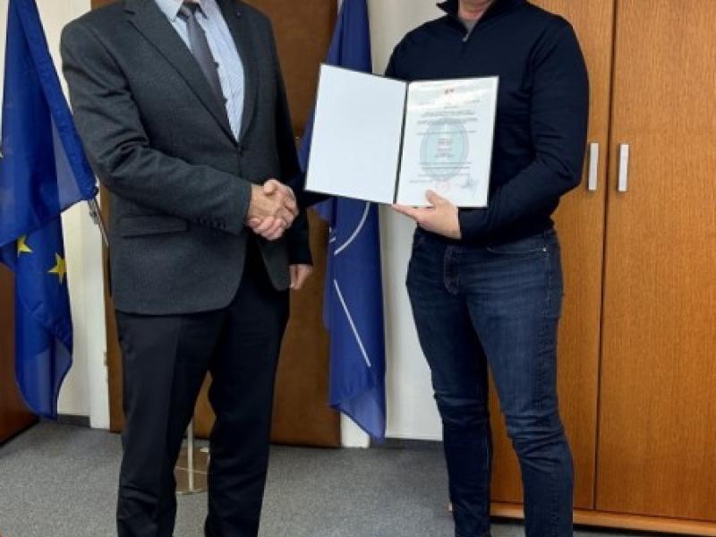 Dňa 18 decembra 2023 odovzdal riaditeľ úradu Ing. Emil KOŠÚT Osvedčenie o zhode…