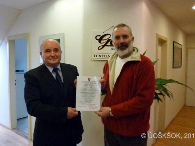 Odovzdávanie certifikátu spoločnosti Gal, spol. s r.o.